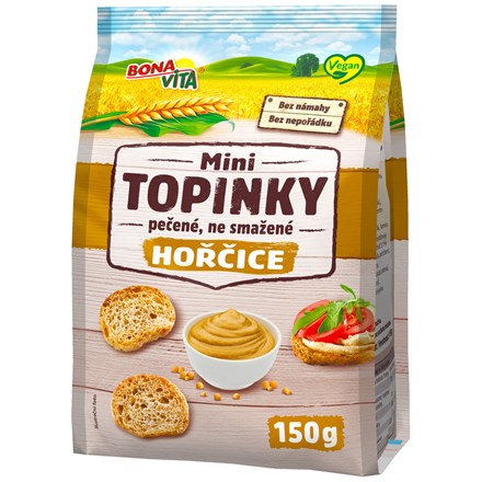 - Pšeničná mouka, rostlinný olej slunečnicový, hořčičná příchuť 3,1% [sůl, maltodextrin, zvýrazňovače chuti: E621; E627; E631, regulátory kyselosti: E262(ii) a E330, dextróza, mouka z hořčičných semínek (hořčice), cibulový prášek, česnekový prášek, aroma, hydrolyzované rostlinné bílkoviny (kukuřice, sója)], droždí, cukr, jódová sůl, (sůl, jodičnan draselný), mouku upravující látka: kyselina askorbová, kmín.