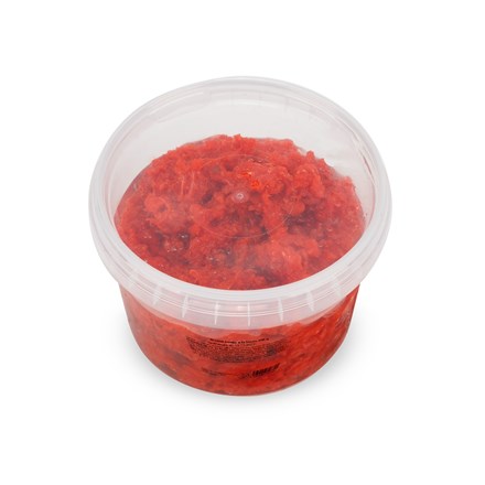 - drcené solené filé z treskovitých ryb 70% (filé tresky, jedlá sůl, dextroza, regulátory kyselosti: citronan sodný, kyselina citronová, konzervanty: benzoan sodný, sorban draselný; tekutý kouř, barviva: žluť SY, košenilová červeň A - mohou nepříznivě ovlivňovat činnost a pozornost dětí), řepkový olej