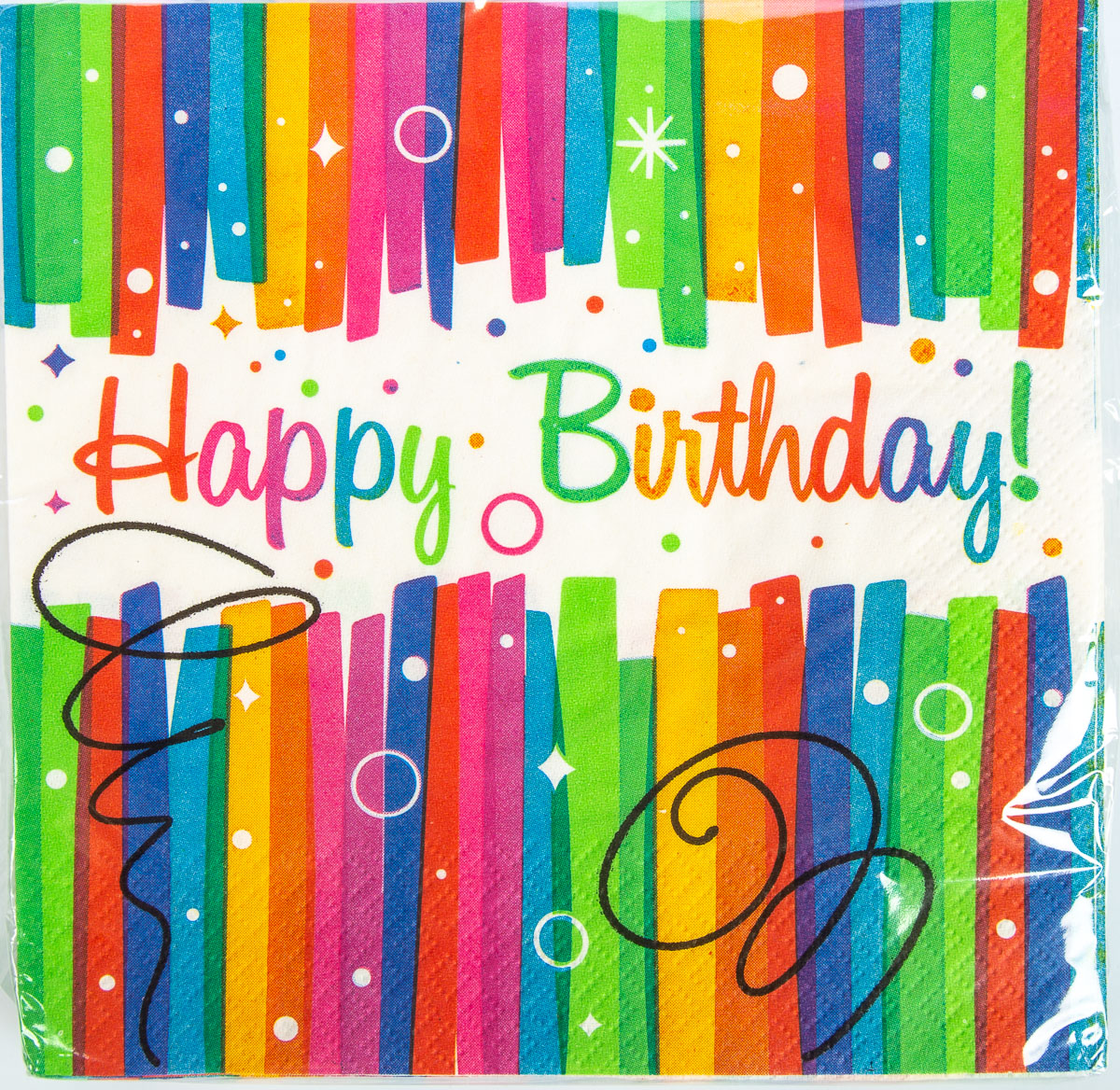 Ubrousky Happy Birthday 33 x 33 cm pruhované 16 ks