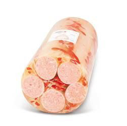 - Špekáčky dlouhé 48% (vepřové maso 55%, vepřové sádlo, pitná voda, vepřové kůže, jedlá sůl, konzervant E 250, vláknina, škrob, modifikovaný škrob, zahušťovadla E 415, E 412, stabilizátory E 450, E 451, E 466, koření, látka zvýrazňující chuť a vůni E 621, dextróza, emulgátor E 471, antioxidant E 300, barviva E 150c, E 162, E 120, česnek), pitná voda, sterilovaná paprika, cibule, jedlá vepřová želatina, ocet kvasný lihový, jedlá sůl, cukr, koření.