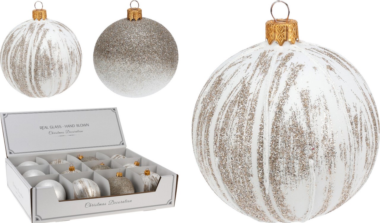 Vánoční skleněná koule 8 cm bílá 2ASS 1 ks