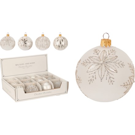 Vánoční skleněná koule 8 cm vločky 1 ks