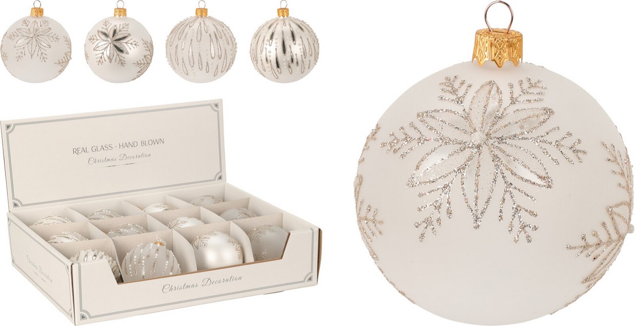 Vánoční skleněná koule 8 cm vločky 1 ks