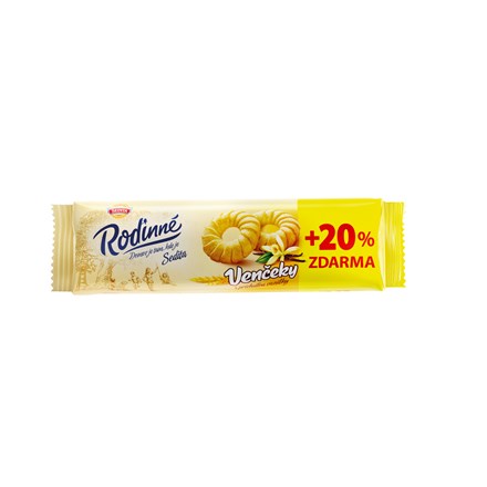 - pšeničná mouka, rostlinný tuk palmový a bambucký, cukr, kukuřičný škrob, sušené odstředěné mléko, sušený vaječný žloutek 3%, sušené plnotučné mléko, sójová mouka, kypřící látky (uhličitany amonné, uhličitany sodné), aromata, jedlá sůl, přírodní vanilkové aroma.Může obsahovat arašídy a skořápkové plody.