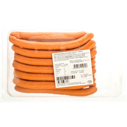- Vepřové maso 73 % hm.; pitná voda; hovězí maso 11 % hm.; sýr eidam 8 % hm.: MLÉKO, jedlá sůl, sýrařské kultury; dusitanová solící směs: jedlá sůl, konzervant: E250; koření a bylinky (m.j. HOŘČIČNÁ mouka, CELER); dextróza; látka zvýrazňující chuť a vůni: E621; LAKTÓZA; aroma; stabilizátor: E450; antioxidanty: E300, E301; regulátor kyselosti: E330; rostlinný olej; extrakt koření: paprikový extrakt; antioxidant: extrakt rozmarýnu. Nejvyšší obsah soli 2,9 % hm. Nejvyšší obsah tuku 40 % hm.