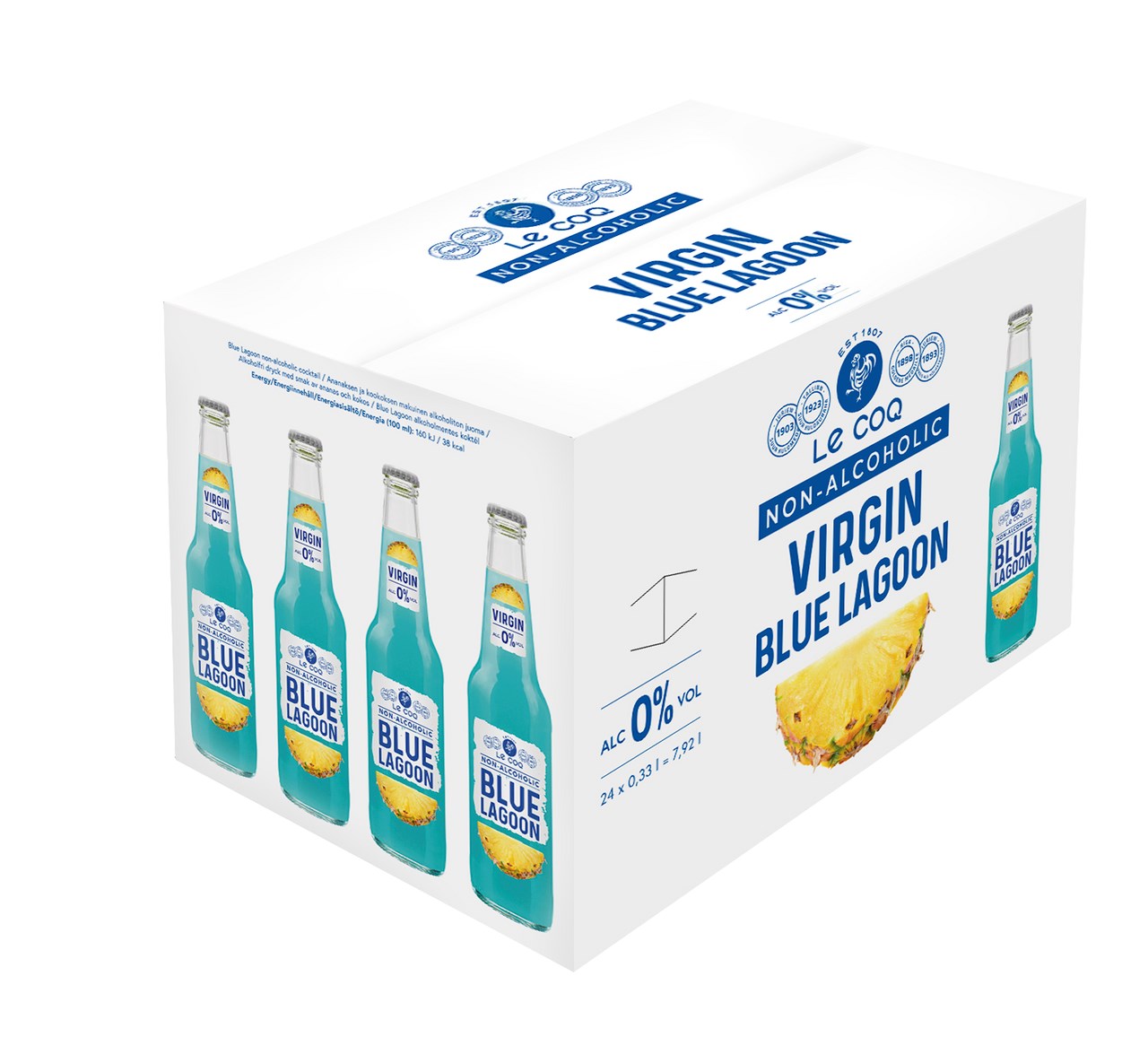 - Nápoj ze zkvašeného jablka a ananasu (51 %), voda, cukr, oxid uhličitý, regulátor kyselosti: kyselina citronová, aromata: kokos, ananas a curaçao, stabilizátory: E414, E445, barvivo: brilantní modř FCF, konzervanty: sorban draselný, METABISULFIT DRASELNÝ. Obsahuje SIŘIČITANY.
