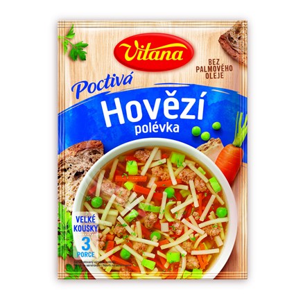 - Obsah sáčku vsypte do 0,8 litru vroucí vody a dobře rozmíchejte. 2. Polévku pozvolna vařte za občasného míchání 8 minut.