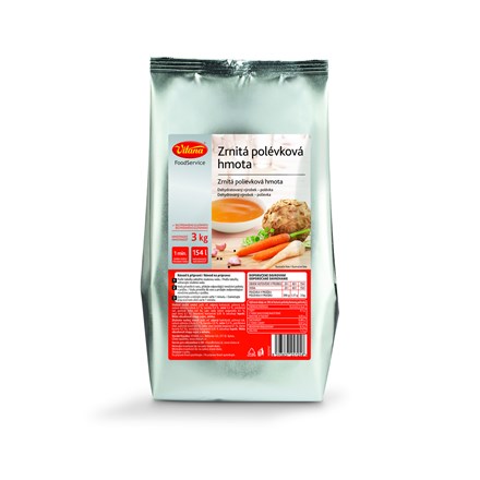 - Odměřte studenou vodu (20l vody na 390 g prášku). Vodu přiveďte k varu, přidejte odpovídající množství polévky v prášku. Zamíchejte a mírným varem vařte 1 minutu.