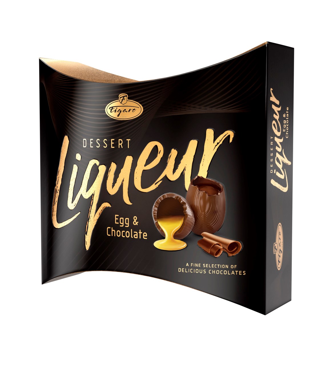 - Mléčná čokoláda 52% s vaječnou alkoholovou náplní (24%) a čokoládovou alkoholovou náplní (24%)
