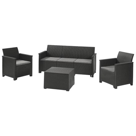 - Tento zahradní set Emma se perfektně hodí do každého prostředíI s omezeným prostorem si můžete pomocí sady Emma vytvořit svůj vlastní venkovní senRatanová struktura a hladké područky plus rezolitní deska stolu zdůrazňují individuální charakter soupravySada se snadno čistí a bude dodána s polštářky.