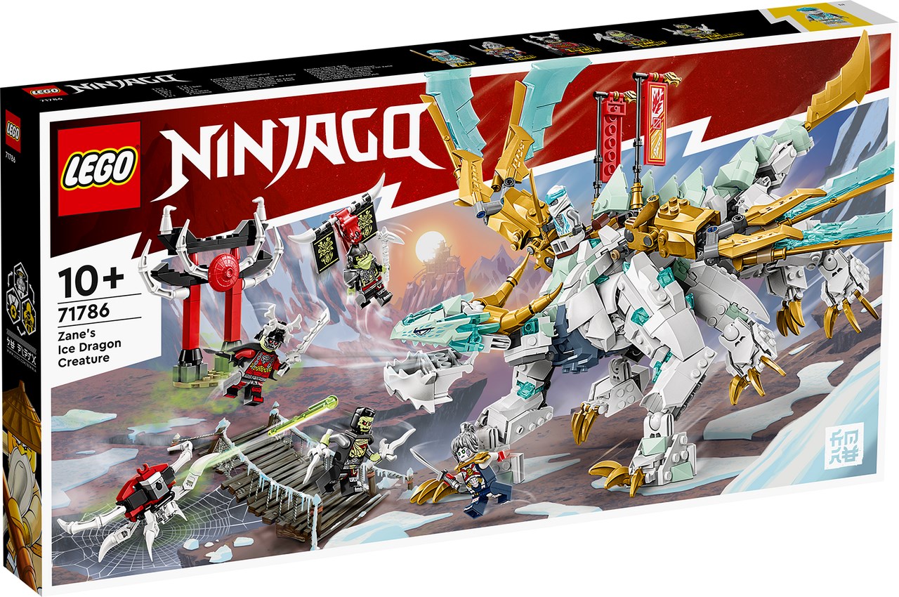 - Stavebnice Zaneův ledový drak od LEGO® NINJAGO® (71786) přináší vše, co mohou děti od 10 let potřebovat k přehrávání příběhů s hrdinnými nindži. Model NINJAGO 2 v 1 lze přestavět z pohyblivého ledového draka s 6 nohama, dlouhým ocasem, rohy a křídly se zlatými čepelemi na pohyblivého dračího válečníka na 2 nohách s velkým zlatým mečem.
